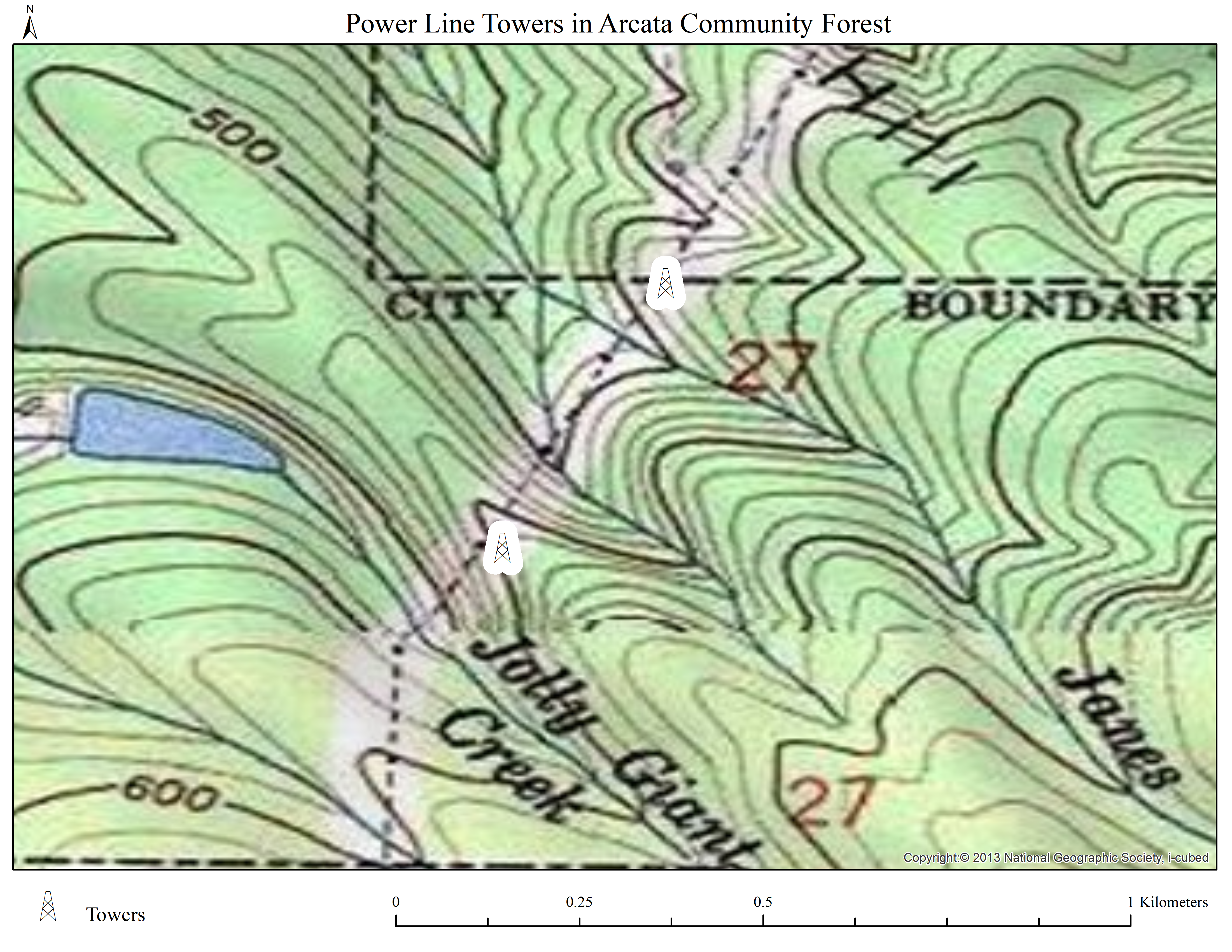 The power lines were georeferenced with my android phone.